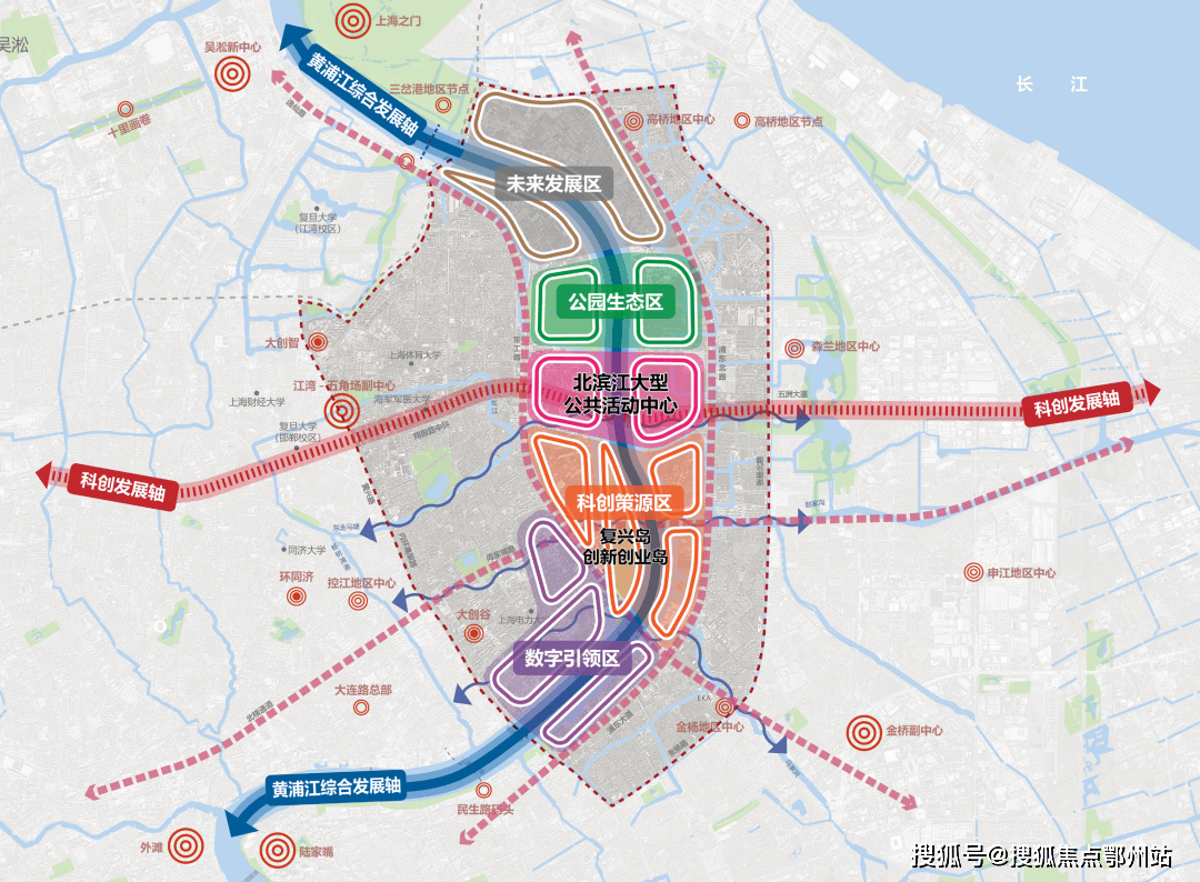随着《上海市黄浦江滨江中北段专项规划》正式公布,确定以复兴岛为核心,联动两岸形成科创策源区;南部滨江数字引领区提升在线经济产业能级;中北部公园生态区强化生态辐射效应;北部片区为未来发展区。