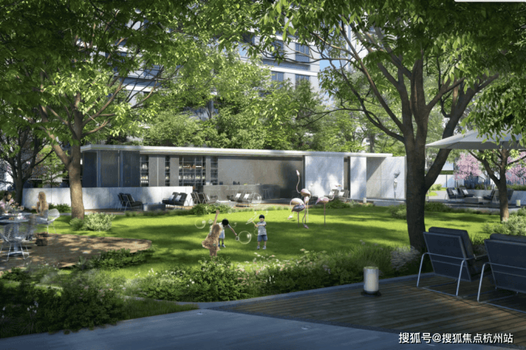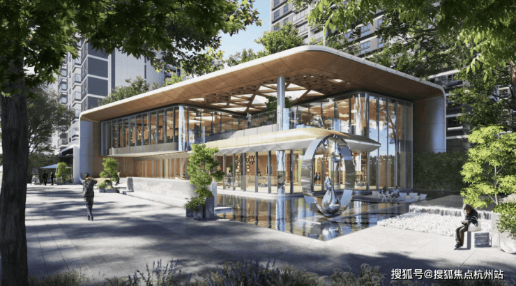 社区采用人车分流设计,在景观规划上,上实望海采用“一界一环五园十八境”景观法则,侧写九大生活场景。