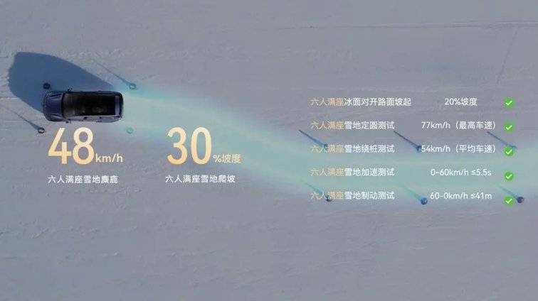 华境S以高效集成带来更高的出行品质和更低的用车成本。新车搭载灵犀动力3.0,匹配智能适时四驱系统,综合功率386kW、峰值扭矩620N·m,百公里加速5秒级;四驱版馈电油耗6.98L/100km,两驱版低至5.98L/100km,满油满电续航超1100km,大幅降低用车成本。同时,在雪地麋鹿测试中,华境S以六座满员状态跑出48km/h优异成绩,展现出强大的冰雪路面操控稳定性,全场景出行都从容。