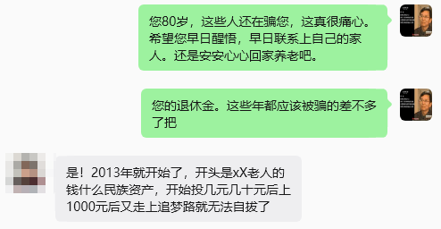 这位年过八旬的老人,2014年,被朋友哄骗,进入了广西北海的1040传销,一次性投入69800元,深陷其中一年多,直到彻底看清骗局真相,才无奈退出。而后,又经人介绍,接连踏入尚鹏高科、融信普惠等网络骗局、以及各类大健康项目,一次次被所谓的“商机”蒙蔽双眼。