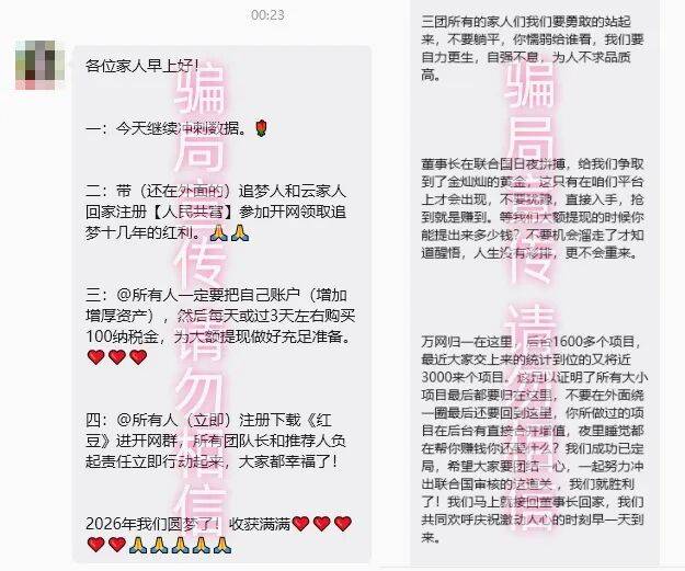 今天,我们要说的这些骗局,基本都是打着“中G梦”旗号,他们披着各种高大上的头衔,用“百万兑现、免费领米、躺拿分红”等极具诱惑力的话术,瞄准诸多在“追梦”的中老年实施诈骗。快看看,有没有您参与的?