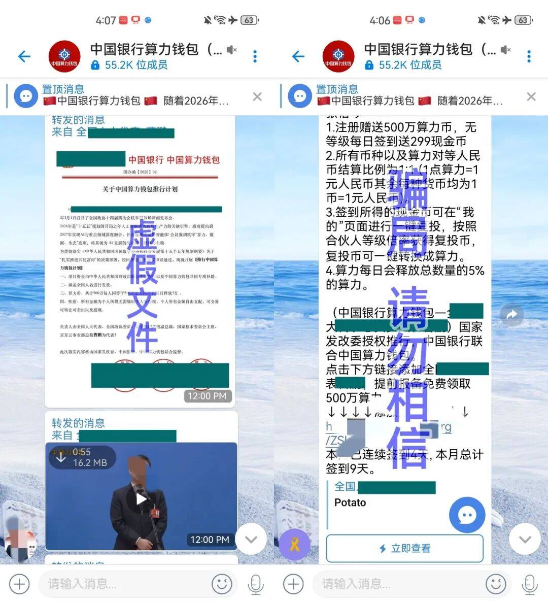 近几年,网络上出现了多个版本的“央数钱包”诈骗项目,无论包装如何更换,核心套路始终不变:前期收集用户身份信息,后期实施精准诈骗,所有版本均无正规资质,一律不要相信。