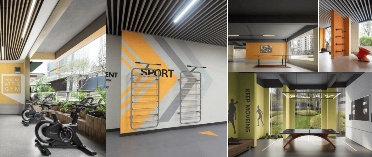 架空层配置多元化的主体功能,按照全龄段人群的居住体验,分别规划“儿童成长、长者幸福、健身运动、邻里中心”四大功能主题空间。以每方圆100米服务半径划分三个服务组团,保证每个核心组团拥有一个全年龄段活动功能。