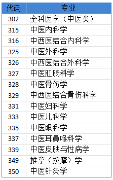中、西医内科疾病、中医外科学、中医妇科学、中医儿科学、针灸学、中医眼科学、中医耳鼻咽喉科学、中医骨伤科学