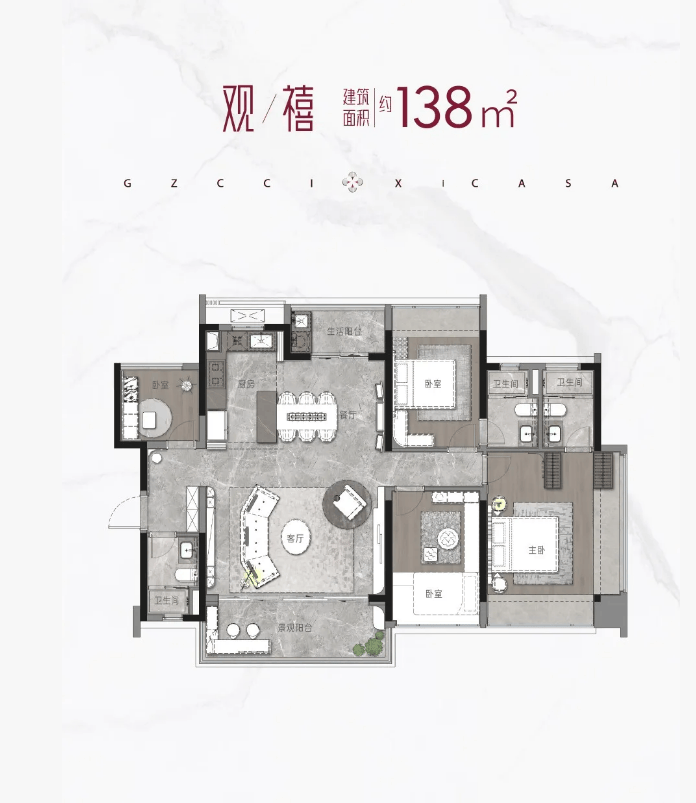 当前在售户型涵盖建面108㎡三房两卫、建面110㎡三房两卫、建面135㎡四房两卫、建面138㎡四房两卫,能适配刚需首套、二胎家庭及改善型居住需求,而且全屋配备华为智能家居系统,提升日常居住便捷度,不管你是三口之家、二胎家庭,还是三代同堂,都能找到适合自己的户型。下面就给大家详细解析每个户型的亮点、适配人群,帮大家精准选房。