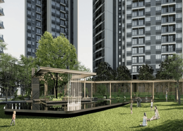 首先是社区园林,项目内部打造了约6.8万㎡中式园林,以礼道、见松、步水、游廊、归堂为设计理念,规划了风雨连廊、中央绿地、林荫步道,日常下楼就能感受到满眼绿意,仿佛置身于公园之中,非常舒适。而且风雨连廊的设计,无惧晴雨天气,不管是下雨天,还是大太阳,都能在社区里自由散步,不用淋雨、不用晒太阳,细节拉满。