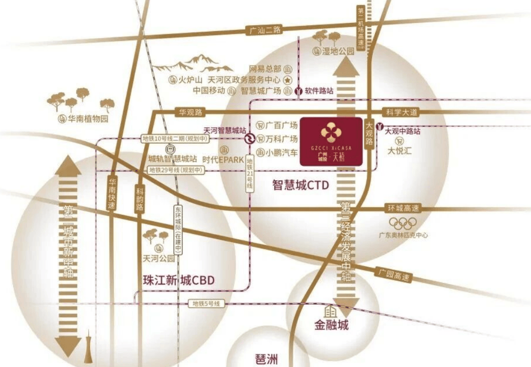 首先说地段,广州城投天禧位于天河区智慧城华观路与大观中路交界处,妥妥的天河智慧城核心板块。可能有朋友对天河智慧城不太了解,这里给大家科普一下:天河智慧城是广州“十四五”重点规划的科创核心区,也是天河区重点打造的“中央科创核”,聚焦战略性先导产业,积极引进科创龙头企业总部及研发中心,培育大湾区一流“科创+智造”产业集群,未来发展潜力拉满。而且这里毗邻天河CBD、金融城,既能享受科创板块的发展红利,又能便捷通达核心商务区,不管是上班通勤,还是生活配套,都能兼顾,妥妥的“潜力股”地段。