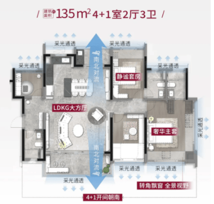 户型做到了三开间朝南,全屋采光充足,不管是客厅、主卧,还是次卧,都能享受到充足的阳光,平时晾晒衣服、采光通风,都非常方便,而且阳光充足的房子,居住起来更舒适,也更显温馨。主卧实现南北对流,带独立卫浴和观景飘窗,兼顾私密性与舒适度,平时休息的时候,能享受安静的空间,而且飘窗可以用来摆放绿植、书籍,或者作为休闲区域,增加空间的实用性。