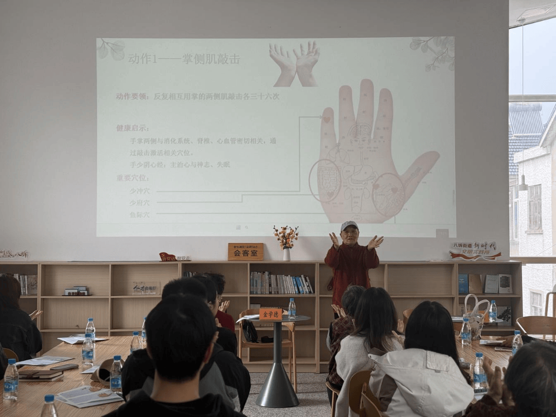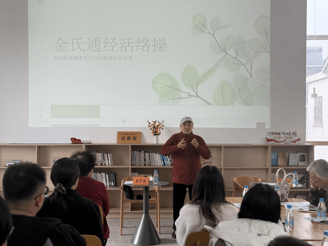 活动现场暖意融融,苏州市侨联华侨书画院顾问金学德老师倾情分享养生心得。今年81岁的金老师,结合自身20余年的养生实践经验,总结整理出一套通经活络操,分享给现场群众。他一边标准示范,一边逐动作拆解讲解,从肢体发力、呼吸配合到穴位对应,耐心细致,带领侨界群众与社区居民缓缓舒展筋骨、活动关节,在轻松愉悦的氛围中,让大家真切感受传统养生操的独特魅力,达到疏通经络、调和气血、强身健体的良好效果。