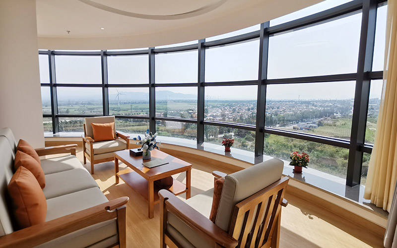 ❐ 设施亮点:地上共10层,功能分区明确,1-4层为医疗配套空间,5-10层为186间养老房间,楼顶设空中疗愈花园,为长者提供休闲放松专属区域。社区周边设有停车场,方便子女探望;一层为接待大厅和医疗中心,二层为琴棋书画娱乐健身会所,配套设施完善,兼顾医疗、文娱与生活需求。